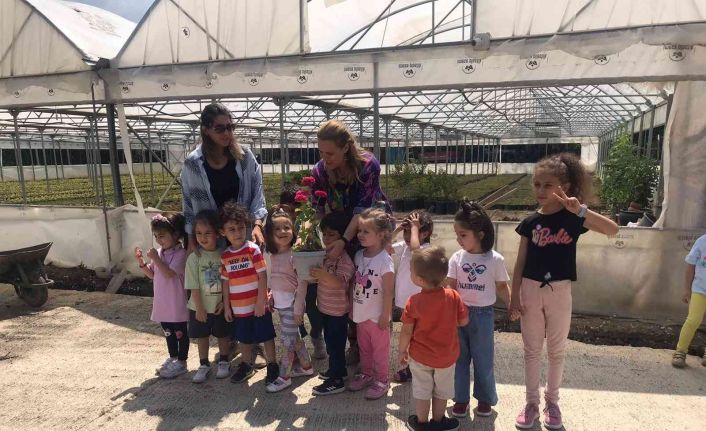 Minik öğrenciler sera alanını gezerek, çiçekleri tanıdı
