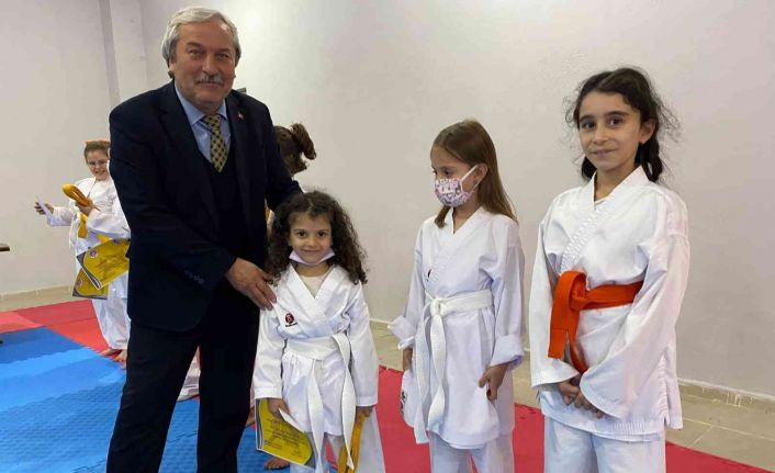 Bilecik’in Osmaneli ilçesinde karate eğitimlerini tamamlayan kursiyerlerden 25’i, kuşak sınavını başarıyla geçti.