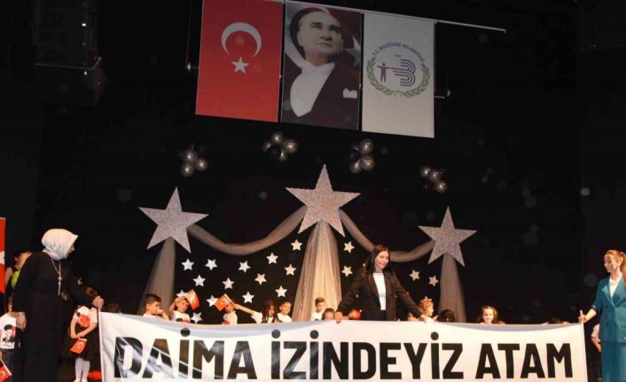 Başkan Bakkalcıoğlu’na konuşmasının ardından Güneş, Yıldızlar ve Gökkuşağı sınıflarının kendi elleriyle hazırladıkları Atatürk resmi ve Türk Bayrağını hediye ettiler.