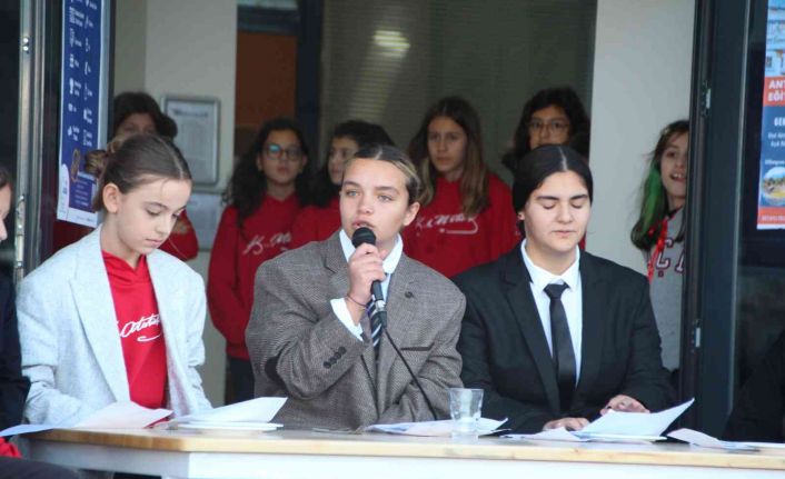 Ardından okulun Sosyal Bilimler Öğretmeni Sinem Mert’in günün anlam ve önemini belirten konuşmasını yaptı. Oratoryo gösterisi, 4,6 ve 8’inci sınıf öğrencilerin şiirlerini okuması, okul korusunun dinletisiyle program sona erdi.