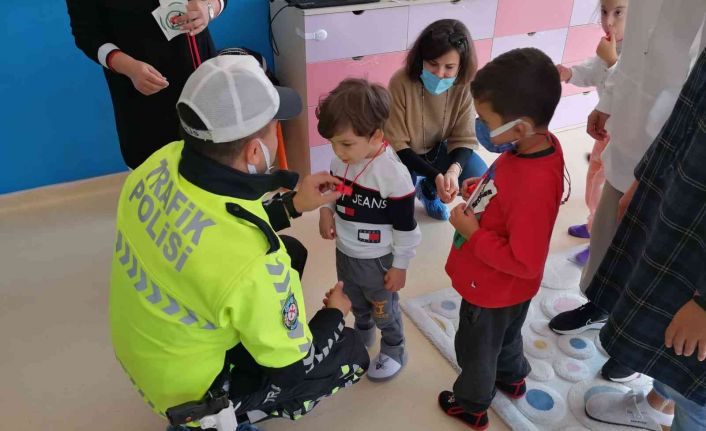 Hayme Ana Özel Eğitim Anaokulu’nda öğrenim gören özel gereksinimli çocuklar ile bir araya gelen ekipler ‘Trafik Kuralları ve Güvenliği’ konulu eğitim semineri düzenlediler. Öğrencilerin ilgiyle takip ettikleri trafik eğitimi sonrasında, trafik kurallarının anlatıldığı etiketler ve kırmızı düdük dağıtılarak, çocuklar üzerinde trafik farkındalığı oluşturuldu.