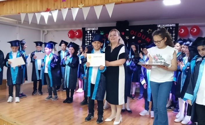Mezun olan 4/D sınıf öğrencileri, ilkokulu bitirip ortaokula adım attıkları günde gönüllerince eğlenirken bir yandan da öğretmenlerinden ayrılmanın üzüntüsünü yaşadılar.