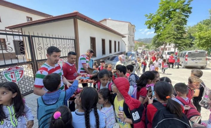 1308 Osmaneli Belediyespor Kulübü, okul çıkışı öğrencilere kek dağıtımı gerçekleştirdi.