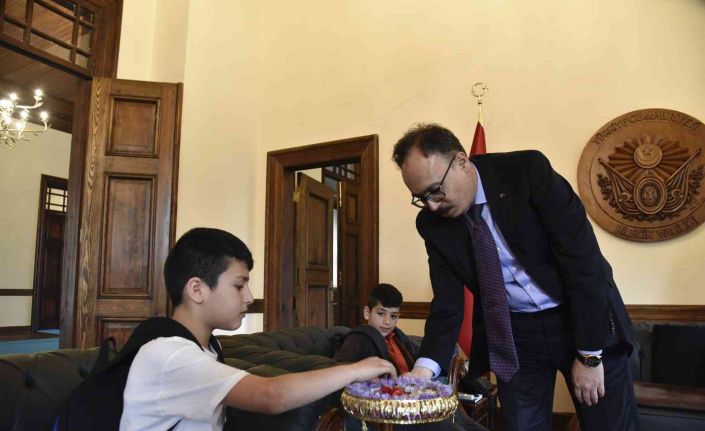 Bilecik’te Atatürk İlköğretim Okulu öğrencilerinden Bedirhan Yağmur ve Erkan Yağmur, Vali Dr. Kemal Kızılkaya’ya bayramlaşma ziyaretinde bulundu.