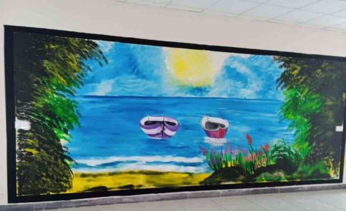 Bilecik’te görsel sanatlar öğretmeni ile öğrencileri tarafından yapılan eserler okula renk kattı.