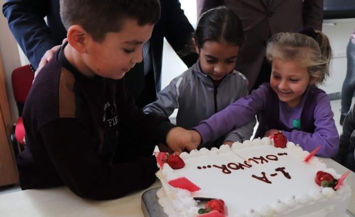 Kaymakam Mercan, Gölpazarı Gazimihal İlköğretim Okulunda okumayı öğrenen 1’inci sınıf öğrencilerine pasta götürerek minikleri tebrik etti. Üzerinde ’1/A Okuyor’ yazılı pastayı öğrenciler ile birlikte kesen Kaymakam Mercan, “Kıymetli yavrularımızı tebrik ediyoruz ve ailelerini, emek veren öğretmenlerini kutluyoruz” ifadelerini kullandı.