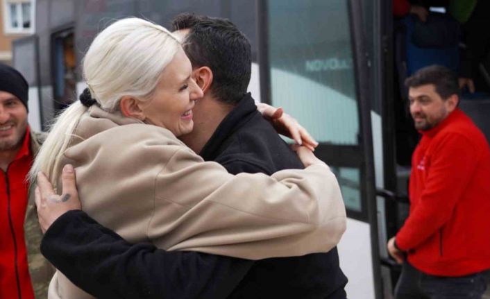 Onlarca canı enkaz altından çıkaran ekip çiçeklerle karşılandı