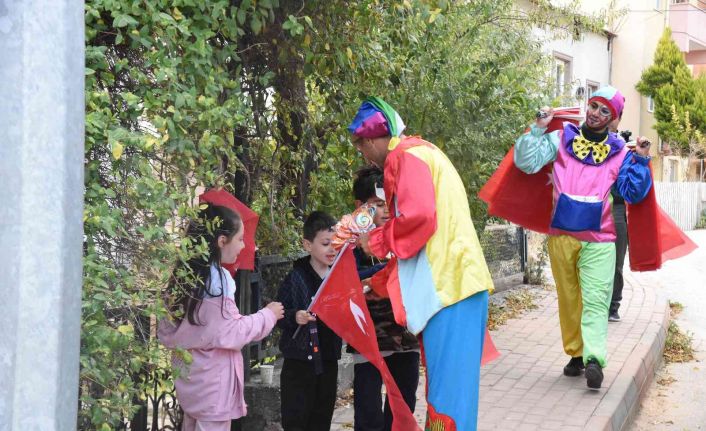 Bilecik Belediyesi tarafından gerçekleştirilen 29 Ekim Cumhuriyet Bayramı etkinlikleri kapsamında çizgi film karakterlerinin kostümlerini giyen animasyoncular üstü açık otobüs ile sokak sokak gezip, çocuklara şeker, maske ve bayrak dağıttı.