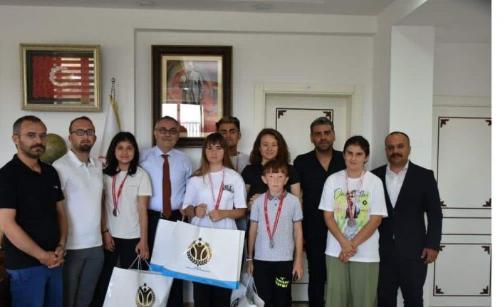 Nevşehir’de geçtiğimiz gün düzenlenen Özel Sporcular Okullar Arası Atletizm Türkiye Şampiyonasında dereceye giren sporcular kente döndü. Başarılı sporcuları makamında ağırlayan İl Milli Eğitim Müdürü Mustafa Sami Akyol, hepsine tek tek hediyeler takdim etti. Genç Kızlar kategorisinde 100 metrede Türkiye birincisi Genç Kızlar Uzun Atlama kategorisinde Türkiye dördüncüsü olan Selin Uysal’a ilk olarak hediyeleri veren İl Müdürü Akyol başarılarının devamını diledi. Ardından Genç Kızlar kategorisinde 400 metrede Türkiye ikincisi olan Yağmur İşbilen, Genç Erkekler kategorisinde 400 metrede Türkiye dördüncüsü olan Sertan Çakmak, Genç Erkekler kategorisinde bin 500 metrede Türkiye birincisi olan İbrahim Tongur ile Yıldız Kızlar Otizm kategorisinde 300 metrede Türkiye dördüncüsü olan Betül Yıldırım’da hediyeleri takdim edildi.