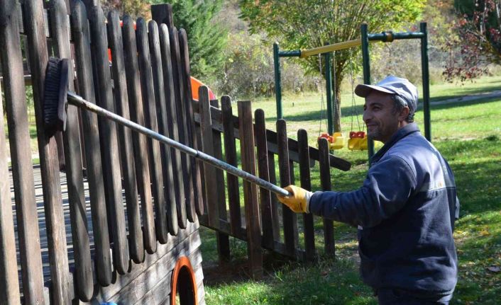Park ve bahçelerdeki ahşap malzemeler onarılıyor