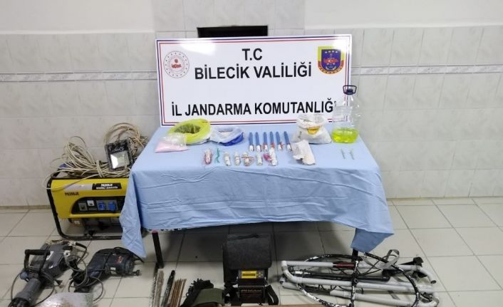 Bilecik’te kaçak kazı yapan 3 şüpheli; kazı aletleri ve patlayıcılarla birlikte jandarma tarafından suçüstü yakalandı.