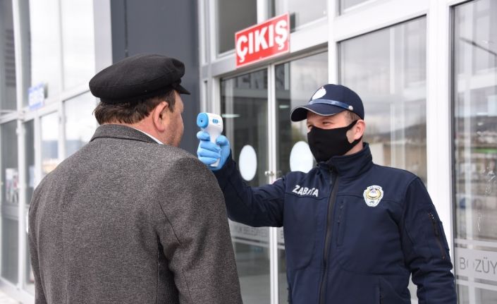 Bilecik’in Bozüyük ilçesinde her gün hizmet vermeye başlayan kapalı pazara zabıta ekiplerince hem tezgahlarını açmaya gelen pazar esnafının hem de alışverişe gelen vatandaşların ateşi ölçülmeden içeri alınmadı.