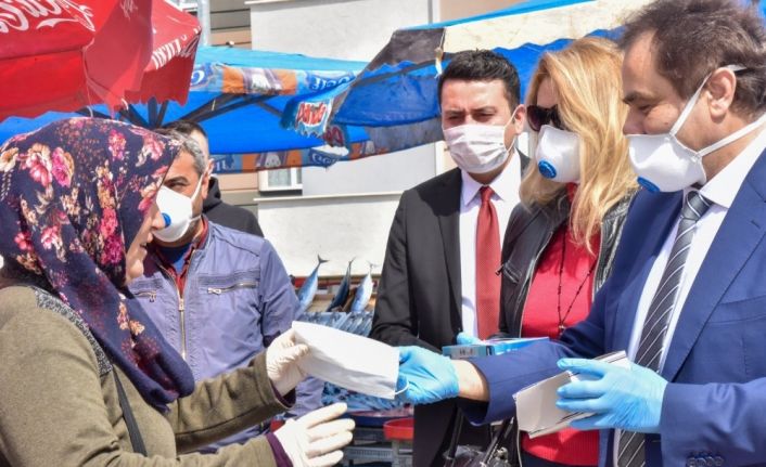 Pazarcı esnafı ile vatandaşlara maske dağıtıldı