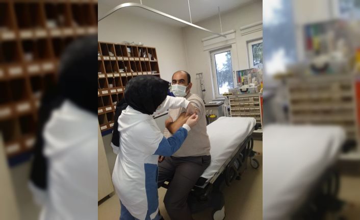Bilecik’in Pazaryeri Devlet Hastanesinde görevli sağlık çalışanlarına korona virüs aşısı vurulmaya başlandı.