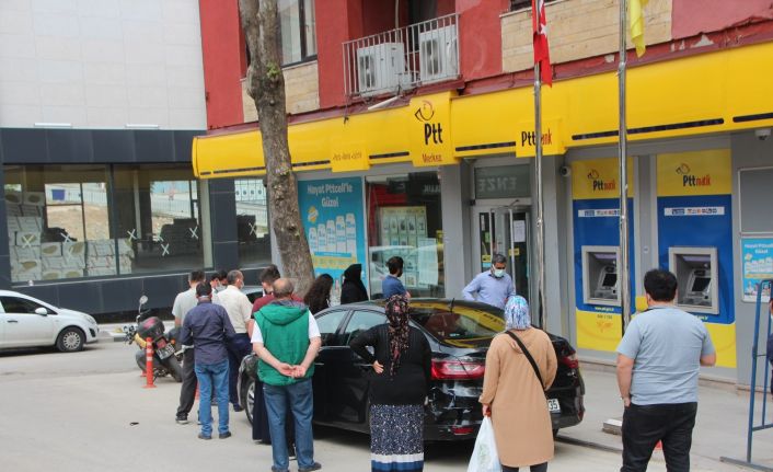 Kapanma sebebiyle vatandaşlar evlerinde kalması gerekirken, İstiklal Mahallesi Belediye Sokak üzerindeki PTT Başmüdürlüğü binası altında bulunan şubenin önünde oluşan kalabalık ve uzun kuyruk dikkatlerden kaçmadı. Vatandaşlar sosyal mesafe kuralına uyduğu görülürken, vatandaşlar şubeye sınırlı sayıda ve HES kodu ile alındı. İşlemi tamamladıktan sonra giderin yerini doldurmak için yeniden gelen vatandaşlar uzun süredir bitmeyen kuyruk diğer sokağa taştı.PTT şubesinin önünde kuyruk oluştu