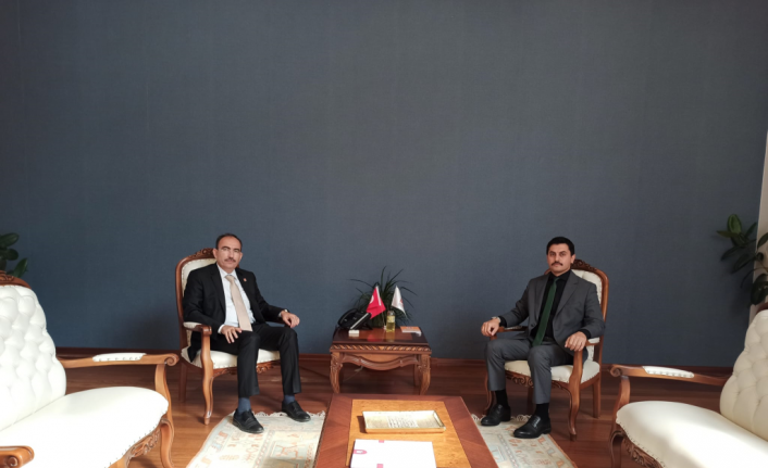 Öte yandan Rektör Beydemir, Kaymakam Başoğlu ziyaret sonunda üniversitenin anı tabağını hediye etti.