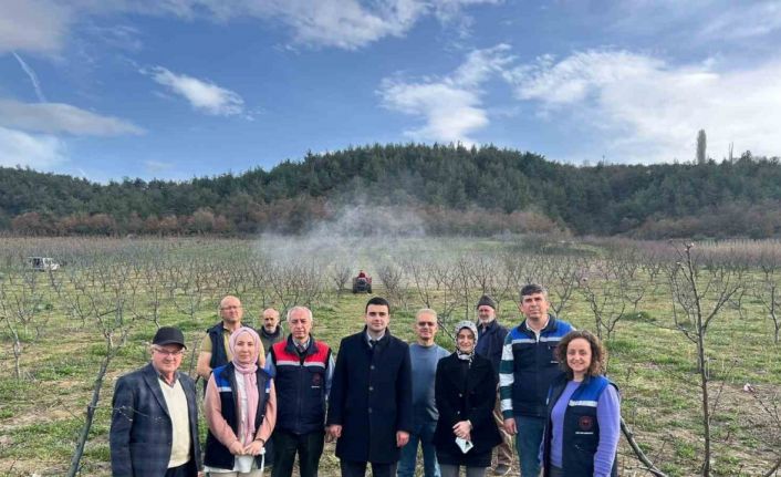 Bilecik’in Osmaneli ilçesinde bilinçli tarım eğitimleri devam ederken, şeftali bahçelerinde ilaçlama uygulamalı olarak gösterildi.