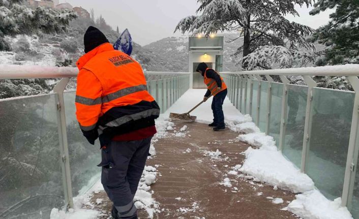 Bilecik kent merkezi 2 gündür etkisi altına alan kar yağışı sonrası ekipler, Şeyh Edebali Türbesi’ni ziyaret eden vatandaşların zorluk yaşamaması için kar mesaisine başladı.