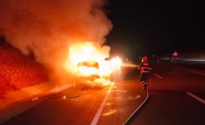 Bilecik’te dün gece seyir halinde bir anda alevler yükselen otomobil cayır cayır yandı.