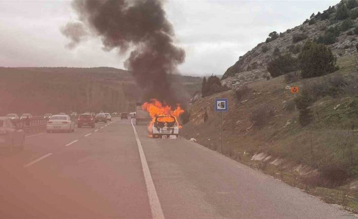 Bilecik’in Bozüyük ilçesinde seyir halindeki bir araç bir anda alev aldı.