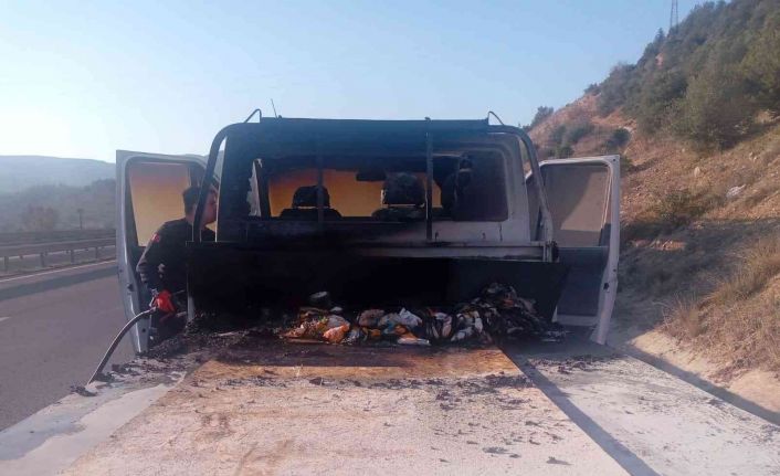 Seyir halindeki kamyonet alev alev yandı