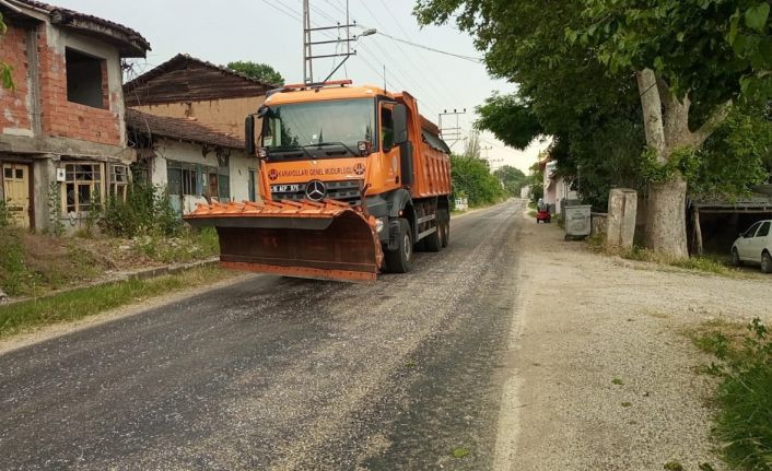 Bilecik ve ilçelerinde son günlerde artan hava sıcaklığı asfaltlarda erimeler meydana gelirken, o bölgelere Karayolları ekiplerince mıcır döküldü.