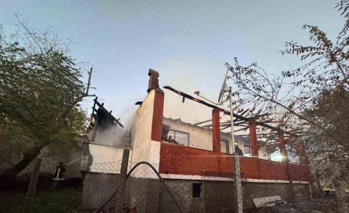 Bilecik’in Pazaryeri ilçesinde şömineden sıçrayan ateşin neden olduğu yangında, tek katlı ev küle döndü.