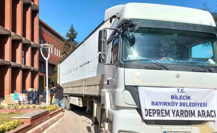 Bayırköy Belediyesi tarafından yardım kolileri, temel gıda malzemeleri, temizlik ve hijyen malzemeleri, ekmek, su, ısıtıcı gibi acil ihtiyaç niteliği taşıyan malzemelerle tırlar deprem bölgesine doğru yola çıktı. Bayırköy Belediye Başkanı aynı zamanda Bilecik Belediyeler Birliği Başkanı Mustafa Yaman, “Deprem felaketinin ardından yardımlaşma, dayanışma, kardeşlik, birlik ve beraberlik duyguları içinde tüm vatandaşlarımızın depremin yaralarının sarılması konusunda ilk andan itibaren seferber olduğu gibi bugün de yola çıkarılan tırlarımıza gencinden yaşlısına hep birlikte yardım kolileri, temel gıda malzemeleri, temizlik ve hijyen malzemeleri, ekmek, su ve ısıtıcı gibi malzemeler, yerleştirilerek deprem bölgesindeki kardeşlerimize ulaştırılmak üzere yola çıkarıldı. Allah tüm vatandaşlarımızdan razı olsun. Ayrıca deprem bölgesinde kullanılmak üzere bir tır dolusu yakacak odun, deprem bölgesine ulaştırılmak üzere gönderildi” dedi.