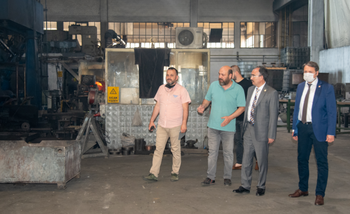 Bilecik Şeyh Edebali Üniversitesi Rektörü Şükrü Beydemir, bir metal fabrikasını ziyaret ederek, üniversite-sanayi iş birliği gibi konuları görüştü.
