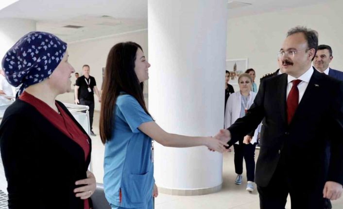 Vali Kızılkaya, Bilecik Eğitim ve Araştırma Hastanesi Başhekimi Erhan Arıkan ile birlikte 9 günlük bayram tatili dönüşü sonrası ilk iş günü mesaisinde hastane personeliyle bir araya geldi. Tüm sağlık çalışanlarının 7/24 millettin hizmetinde fedakarca hizmet ettiğini belirten Vali Kızılkaya, görevli personelin geçmiş Kurban Bayramını kutladı.