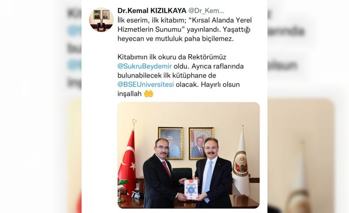 Vali Kızılkaya, duyduğu heyecanı sosyal medya üzerinden yaptığı paylaşımda belirterek, “İlk eserim, ilk kitabım, ‘Kırsal Alanda Yerel Hizmetlerin Sunumu’ yayınlandı. Yaşattığı heyecan ve mutluluk paha biçilemez. Kitabımın ilk okuru da Rektörümüz Şükrü Beydemir oldu. Ayrıca raflarında bulunabilecek ilk kütüphane de Bilecik Şeyh Edebali Üniversitesi olacak. Hayırlı olsun inşallah” ifadelerini kullandı.