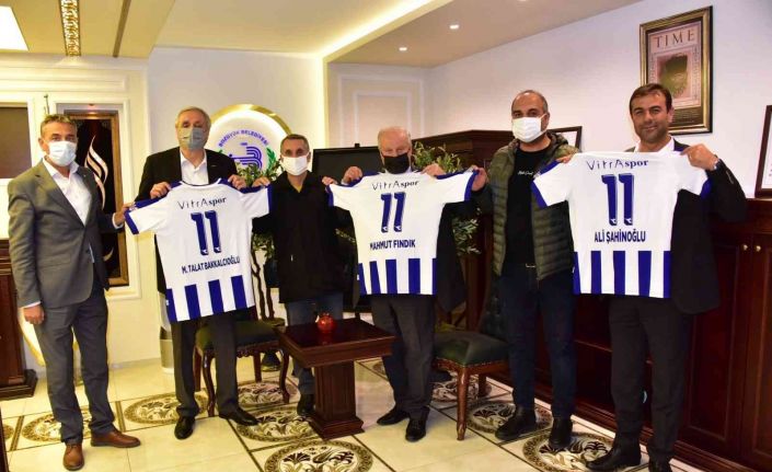 Bozüyük Vitraspor Kulübü yöneticileri Bozüyük Belediye Başkanı Mehmet Talat Bakkalcıoğlu’nu ziyaret ederek Başkan Bakkalcıoğu’na üzerinde ismi yazılı takım forması hediye ettiler.