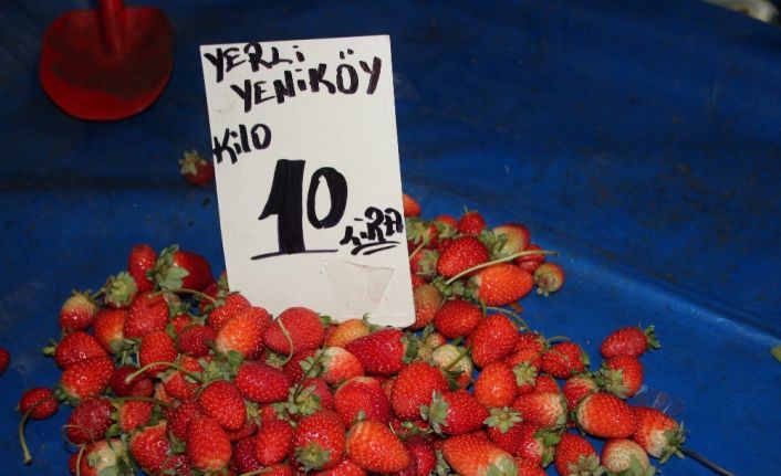 Bilecik’te pazar tezgahlarında kilosu 10 liraya satılan yaz meyvesi yerli çilek, vatandaşlardan büyük ilgi görüyor.