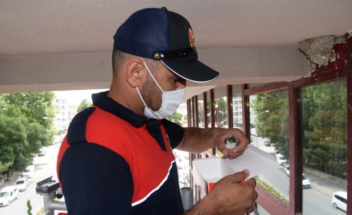 Bilecik’te yuvasından düşen yavru kırlangıç, itfaiye ekiplerince yeniden yuvasına konuldu.