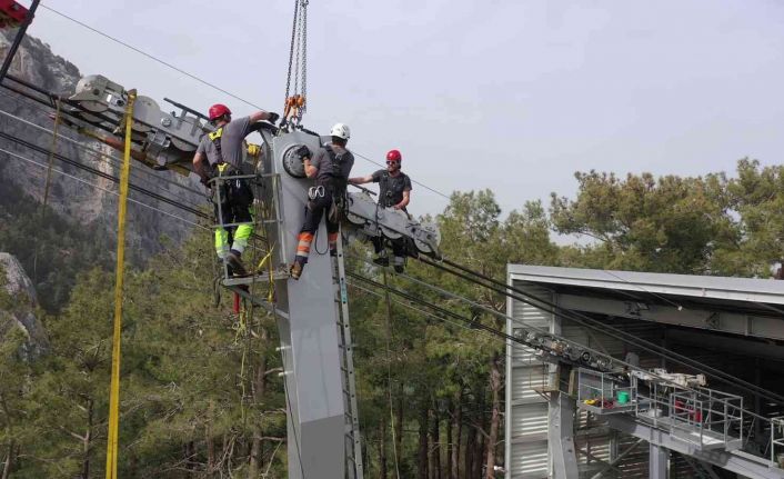 Antalya’nın Kemer ilçesinde 2365 metrelik Tahtalı Dağı’nın zirvesine çıkmak için 2007 yılında hizmete giren teleferik, 15 yıl bakımına alındı. Halatların yenilenmesinden kabinlere kadar birçok tesisatın bakıma alındığı tesiste, 4350 metre uzunluğundaki teleferiğin çekici halatı da değiştirildi.