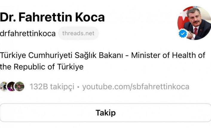 Sağlık Bakanı Fahrettin Koca, META şirketi tarafından geliştirilen yeni sosyal medya platformu ’Threads’e katıldı.