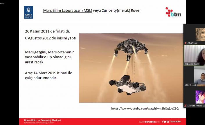 Bursa Büyükşehir Belediyesi Bilim ve Teknoloji Merkezi (BTM) Covid-19 salgını döneminde önemli bir sosyal sorumluluğu yerine getirdi. Millî Eğitim Bakanlığı’nın eTwinning projesi kapsamında gerçekleştirilen online bilim atölyelerine destek veren Bursa Bilim ve Teknoloji Merkezi, projenin son ayağında bilime meraklı gençlere uzay ve astronomiyi anlattı. ‘Dünyaya Güvenli İniş’ atölyesi adı altında gerçekleştirilen online sunumda BTM eğitmenleri Elvan Şen Yılmaz, Özlem İnan Yosun evlerinde kendi laboratuarlarını kuran öğrencilere insanoğlunun uzay macerasında geldiği noktayı aktardı.