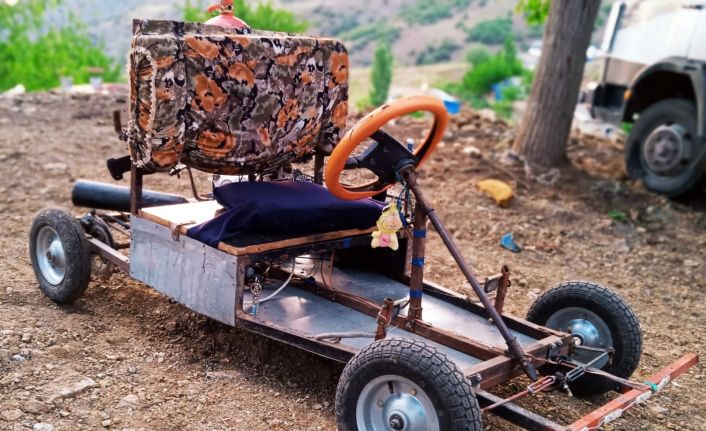 Kahramanmaraş’ta 18 yaşındaki genç, yaşadığı dağ köyünde kendi imkanlarıyla go kart aracı yaptı.