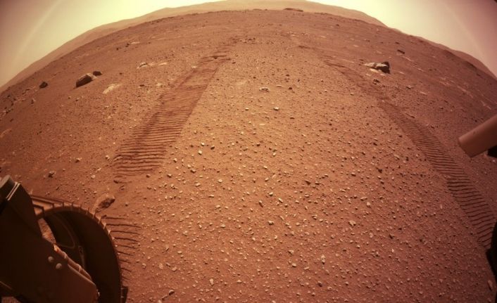 Amerikan Havacılık ve Uzay Ajansının (NASA) Mars’a gönderdiği uzay aracı Perseverance, yüzeydeki çalışmalarını sürdürüyor. Uzay ajansı tarafından yapılan açıklamada, Perseverance’in ilk sürüşünü gerçekleştirmesinin ardından toplam 70 metrelik sürüş mesafesine ulaştığı bildirildi. Mars yüzeyine lastik izini bırakmaya devam eden aracın çektiği yeni bir fotoğraf da paylaşıldı.