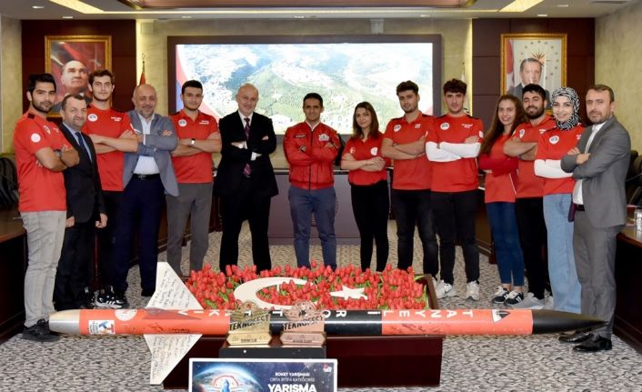 İstanbul’da düzenlenen TEKNOFEST 2021’de “Roket Orta İrtifa” kategorisinde Türkiye şampiyonu olan Ondokuz Mayıs Üniversitesi (OMÜ) Mühendislik Fakültesi ile Samsun Üniversitesi (SAMÜ) Havacılık ve Uzay Bilimleri Fakültesi öğrencilerinden kurulu Samsun Atakum Gençlik Merkezi Tanyeli Roket Takımı’nı OMÜ Rektörü Prof. Dr. Yavuz Ünal tebrik etti. Danışmanlığını OMÜ Mühendislik Fakültesi Elektrik Elektronik Mühendisliği Bölümünden Doç. Dr. Çetin Kurnaz’ın yaptığı Samsun Atakum Gençlik Merkezi Tanyeli Roket Takımı üyeleri, düzenlenen programda Rektör Ünal tarafından Rektörlük Senato Salonu’nda ağırladı.