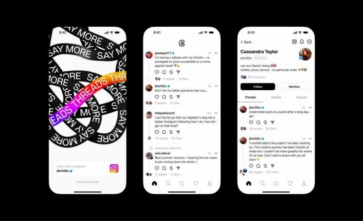 Sosyal medya uygulaması Twitter’a yeni bir rakip çıktı. ABD merkezli teknoloji şirketi Meta’nın CEO’su Mark Zuckerberg, yeni metin tabanlı uygulaması “Threads”’ı kullanıma sundu. Uygulama App Store ve Google Play Store’da yerini alırken, Threads’a ilk 7 saatte 10 milyon kişi üye oldu. Uygulamadaki karakter sınırının 500 olacağı belirtilirken, Threads’daki paylaşımlara ise “threads” ismi verildi. Dünya genelinde 100 ülkede kullanıma sunulan Threads, Avrupa Birliği ülkelerinde regülasyon ve veri gizliliği endişelerinden dolayı henüz kullanılamıyor.