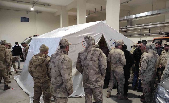AFAD Bingöl İl Müdürlüğü ekipleri, kentteki güvenlik korucularına çadır kurma eğitimi veriyor.