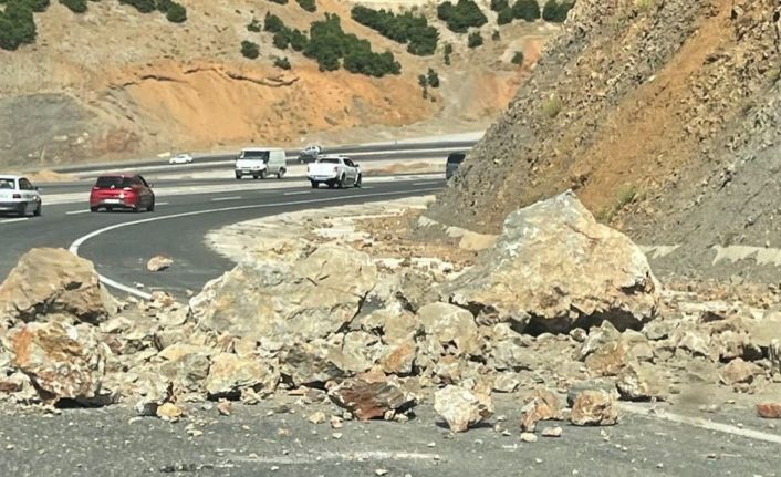 Bingöl Erzurum karayolu Hacılar Köyü mevkiinde dağdan kopan kayalar yola düştü.