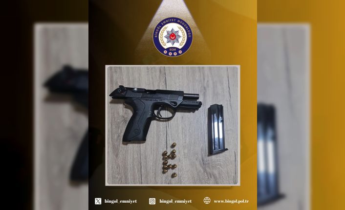 Bingöl Emniyet Müdürlüğü Terörle Mücadele Şube Müdürlüğü ekipleri şüpheli bir aracı durdurup arama yaptı. Aramada, Beretta Gardone marka ruhsatsız tabanca, 1 adet şarjör içerisinde 12 adet STR24 ibareli 9x19 milimetre fişek ele geçirildi. Olayla ilgili bir şüpheli hakkında adli işlemlere başlandığı belirtildi.