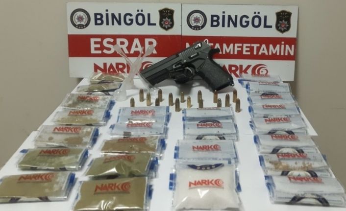 Bingöl polisinin tespit edip takibe aldığı uyuşturucu taciri, özel harekat timlerinin desteğiyle yapılan baskında yakalandı. Şüpheli, tutuklanırken adresinde yapılan aramada çeşitli uyuşturucu maddeler ele geçirildi.