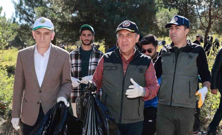 Bingöl’de gençler ve il protokolü, ele ele verip ormanlık alanda temizlik yaptı.