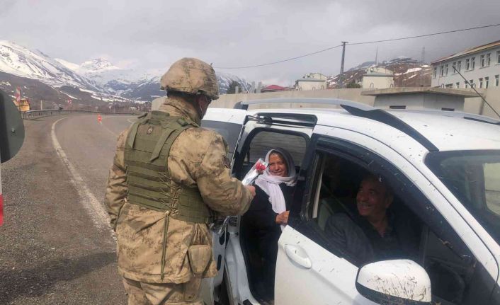 Bingöl İl Jandarma Komutanlığı personeli, 8 Mart Dünya Kadınlar Günü kapsamında çeşitli programlar gerçekleştirdi. İl genelindeki kadınların gününü kutlayan personel, yol kontrol noktalarında durdurulan araçlardaki kadın vatandaşlara ve ilçelerdeki okullarda görev yapan kadın öğretmenlere karanfil verdi.