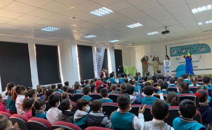 Bingöl Belediyesi işbirliğinde Adaklı ilçesindeki bir ilkokulda öğrencilere bağımlılık ve şiddetle mücadele konulu tiyatro gösterimi sergilendi.