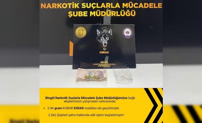 Bingöl İl Emniyet Müdürlüğü, kent genelinde çalışmalarını sürdürüyor. Bu çerçevede yapılan çalışmalarda 1 adet kurusıkı tabanca, 1 adet bıçak ve 2.46 gram kubar esrar maddesi ele geçirildi. Toplam 5 şahıs hakkında adli işlemlere başlanıldığı bildirildi.