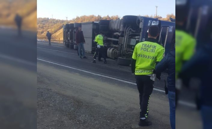 Kaza, Genç-Diyarbakır Karayolu Küpar mevkiinde meydana geldi. Alınan bilgilere göre, yabancı plakalı tır, freni boşalması nedeniyle devrildi. Kazada sürücü yara almazken, tırdan yola yağ ve mazot aktı. Bölgeye sevk edilen polis ve itfaiye ekipleri, yolu bir süre kontrollü olarak trafiğe kapattı.